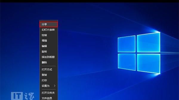 Win10系统下添加/删除目标UWP应用技巧: 1、比如在《照片》应用中打开新版英雄壁纸(或其他图片文件),单击右键就可以看到分享(其他UWP应用内分享方法大同小异)。