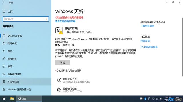 3、点击系统更新,检查更新,将所有的更新全部安装后重启。