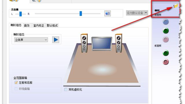 5、回到音频管理器,点击右边的图标。找到绿色的,然后单击进去,就可以选择耳机了,这样就都有声音了。