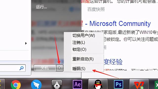 7、可以看到“WIN”键菜单中睡眠选项已经出现,同时根据之前的设定,当条件满足,系统会进入睡眠状态。